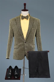 Phil Dark Gold Peaked Lapel Two Pieces Sequins Chic Sequins Prom Suits