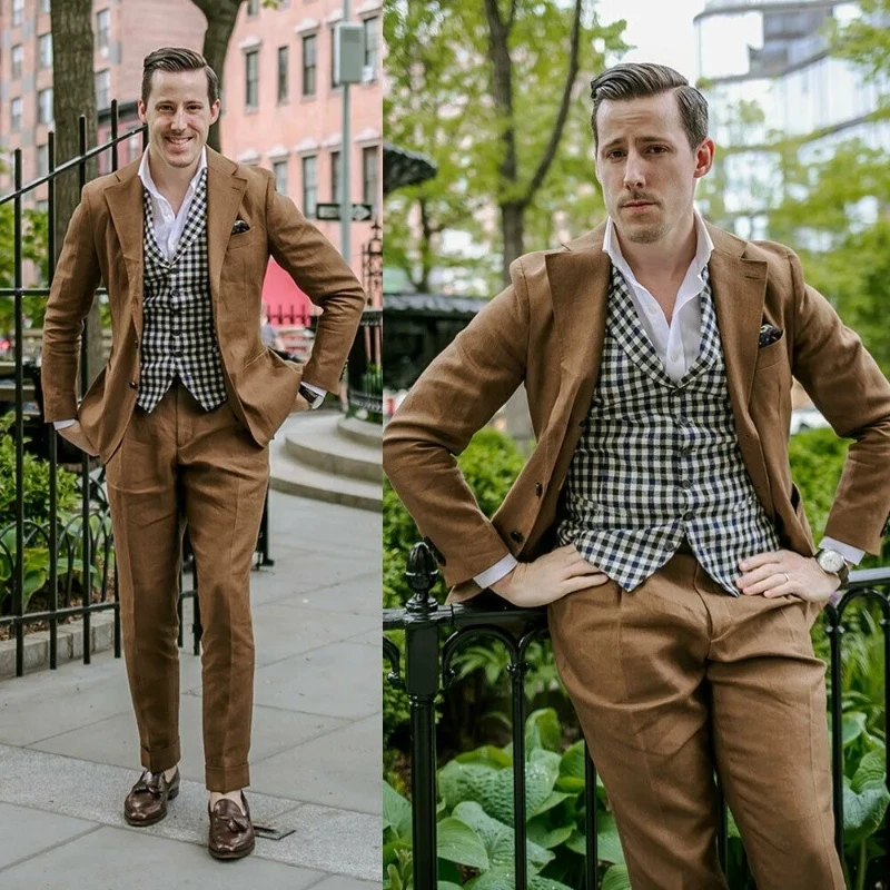 Quentin Trendy Brown Notched Lapel Three Pieces Men Suits Best Fitted Prom