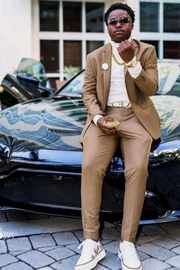 Quintion Simple Khaki Notched Lapel Close Fitting Men Suits