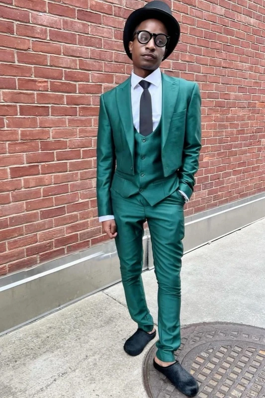 Ramsey Green Peaked Lapel Three Pieces Prom Men Suits