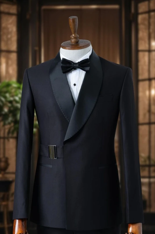 Reed Fashion Dark Navy Shawl Lapel Best Fitted Wedding Men Suits