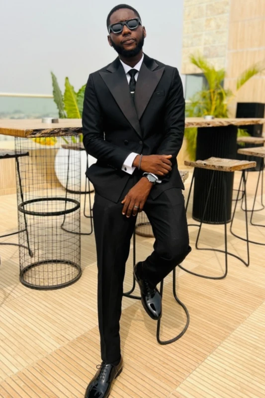 Reginald Black Peaked Lapel Double Breasted Slim Fit Men Suits For Prom