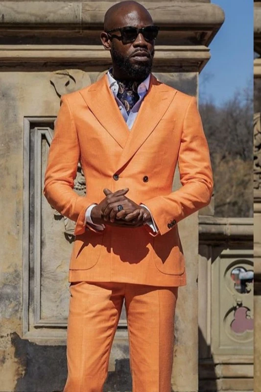 Richard Orange Peaked Lapel Double Breasted Prom Men Suits