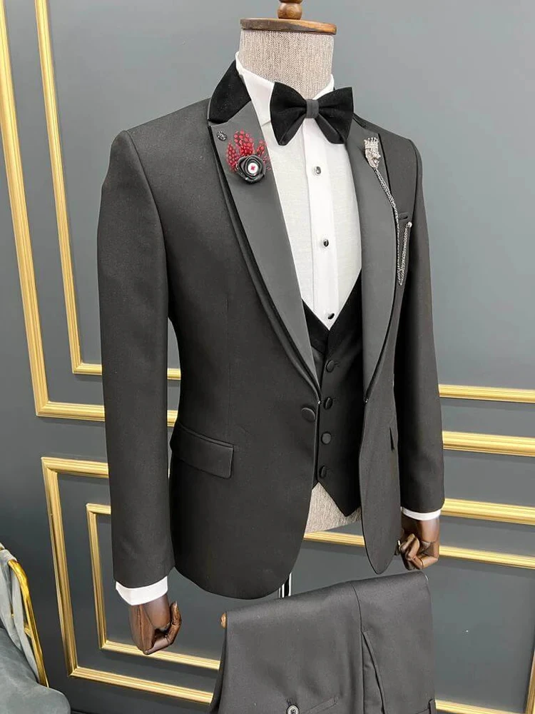 Robert Chic Dark Gray Peaked Lapel Three Pieces Business Suits