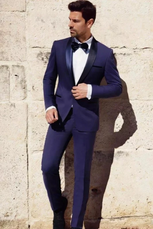 Rodney Dark Blue Shawl Lapel Prom Men Suits