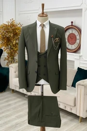 Rupert Dark Green Peaked Lapel Three Pieces Classic Business Suits