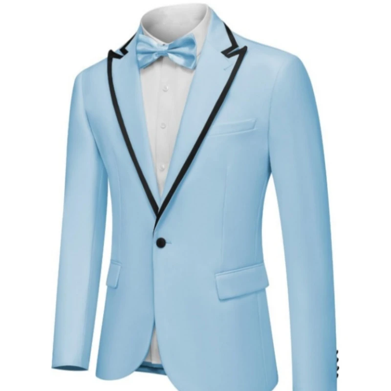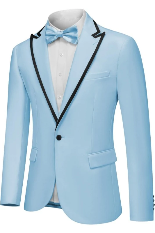 Saxon Light Blue Peaked Lapel Prom Men Suits With Black Edge