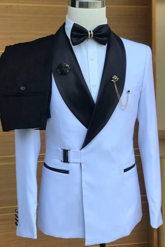 Sean Fancy White Shawl Lapel Slim Fit Best Fitted Wedding Men Suits