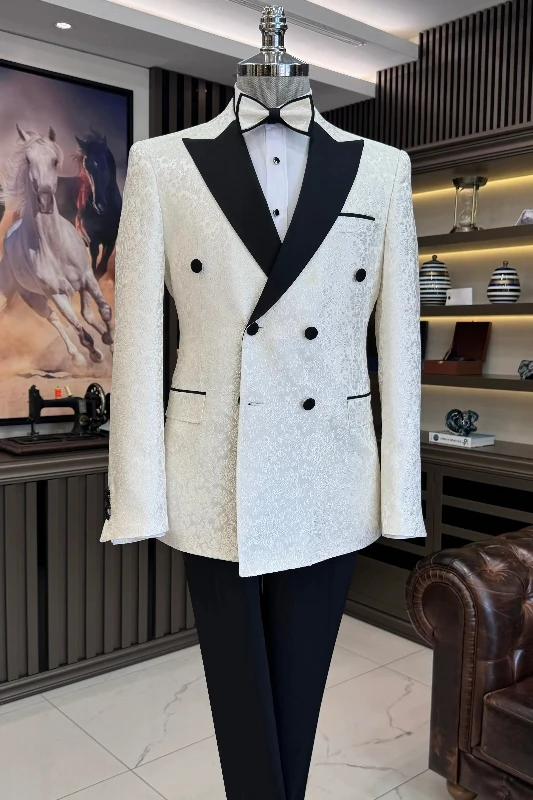 Silvester White Peaked Lapel Double Breasted Jacquard Men Suits