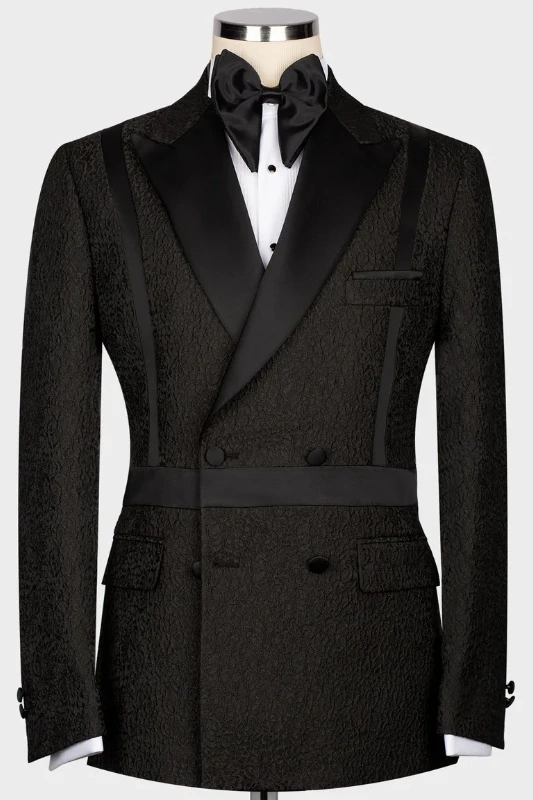Spencer Chic Black Peaked Lapel Double Breasted Wedding Men Suits