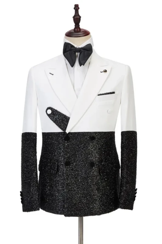 Spencer Simple White Peaked Lapel Double Breasted Slim Fit Men Suits For Prom