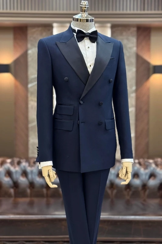 Theobald Dark Navy Peaked Lapel Double Breasted Men Suits