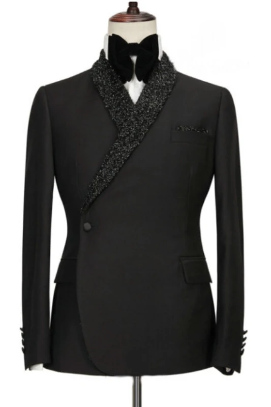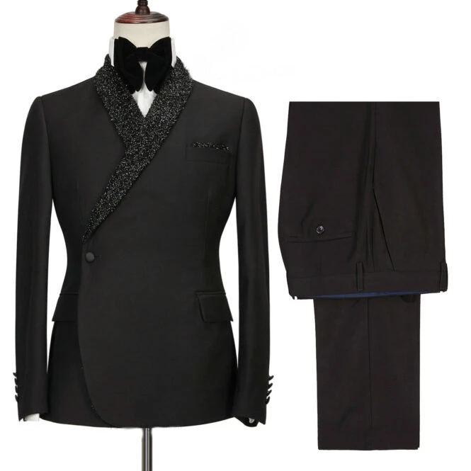 Troy Bespoke Black Two Pieces Wedding Suits With Sequins Shawl Lapel