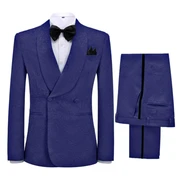 Upton Chic Navy Blue Jacquard Shawl Lapel Double Breasted Wedding Suits