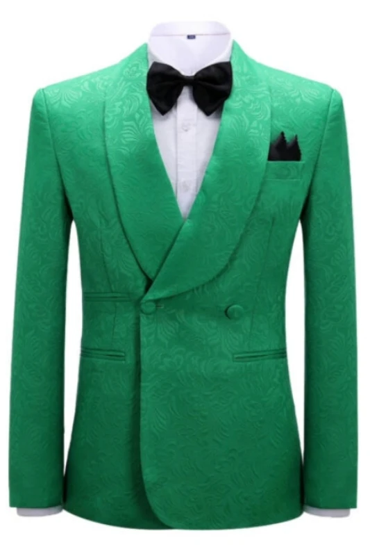 Vic Classic Green Jacquard Shawl Lapel Double Breasted Wedding Suits
