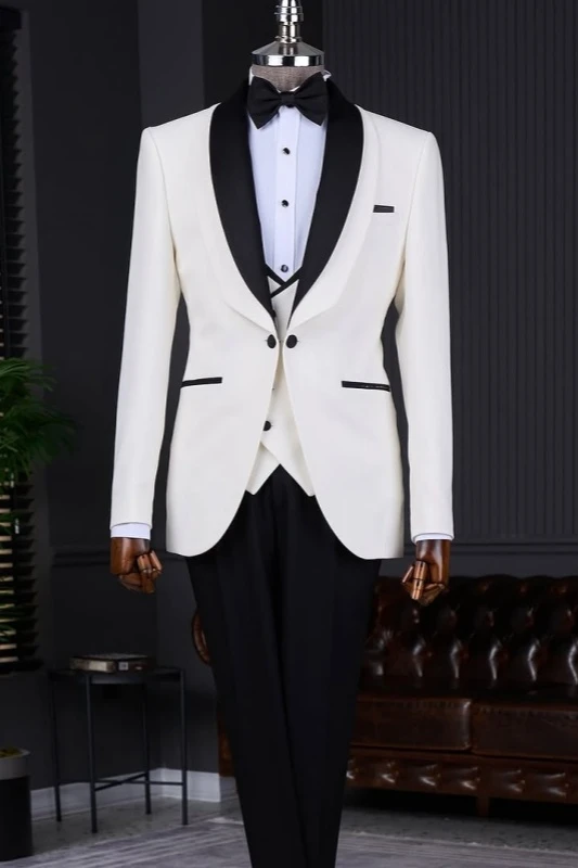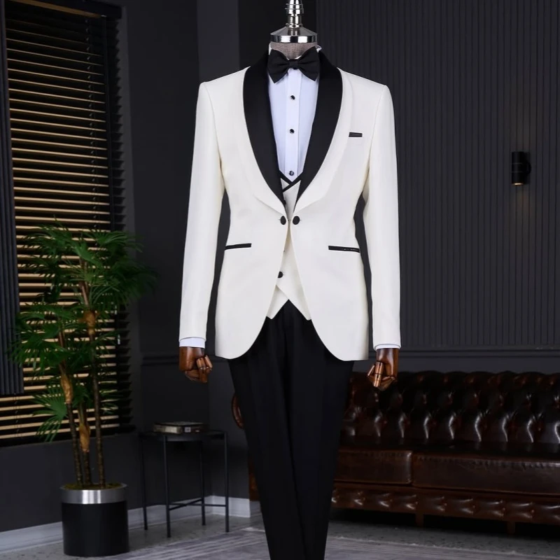 Vic Fashion White Shawl Lapel Three Pieces Wedding Men Suits