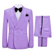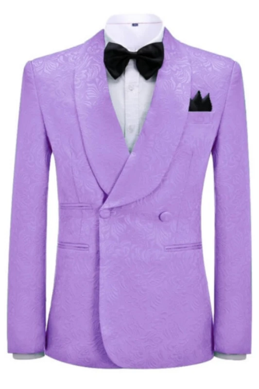 Vincent Glamorous Lilac Jacquard Shawl Lapel Double Breasted Wedding Suits