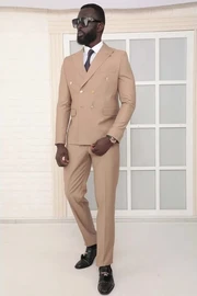 Wallace Fashion Beige Peaked Lapel Double Breasted Men Suits For Prom