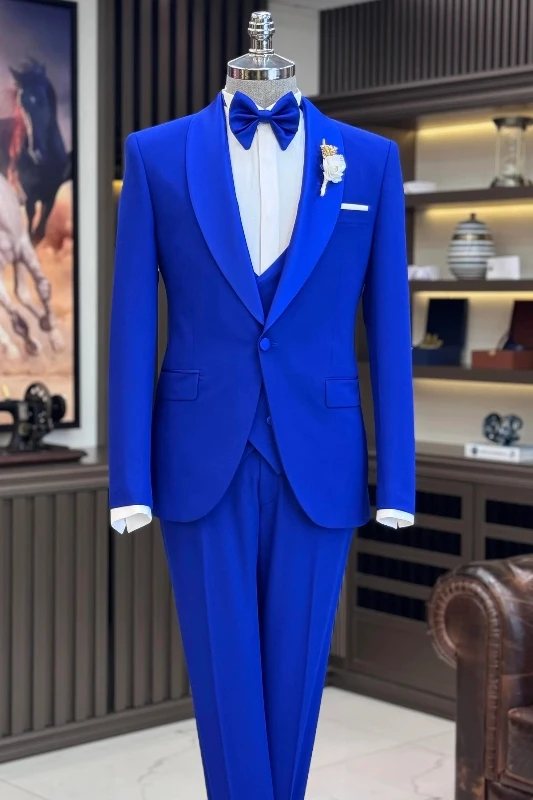 Ward Royal Blue Shawl Lapel Three Pieces Wedding Men Suits