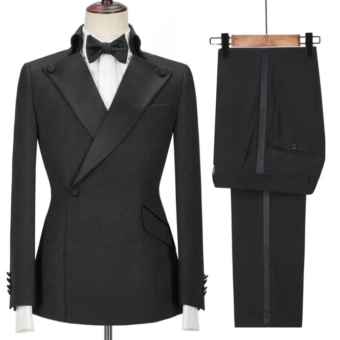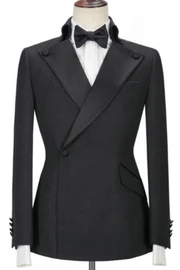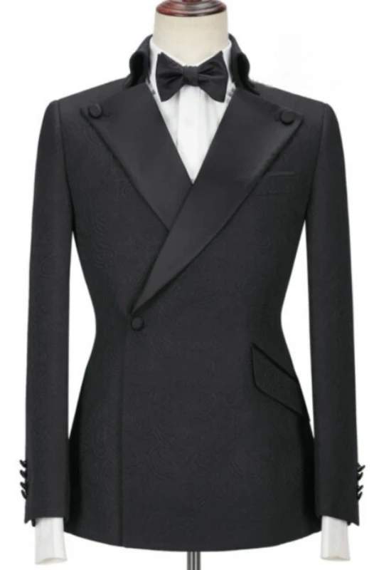 Ziv Fancy Black Peaked Lapel Two Pieces Prom Suits
